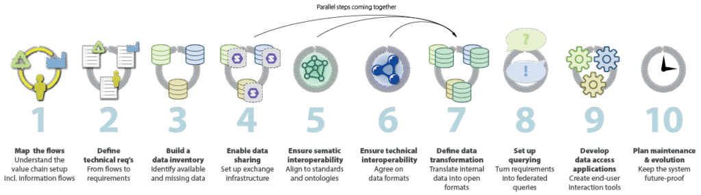As new suppliers join the marketplace or regulations change, the data steward and the developers update the data inventory, ontology, YARRRML mapping files and SPARQL queries. As the system was designed to accommodate new actors and data sources this does not disrupt existing workflows, and long-term adaptability and compliance in the circular value chain is ensured.